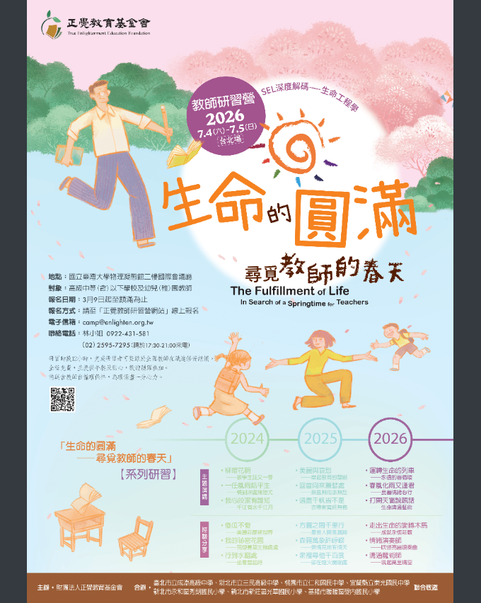 (四)報名:115年3月9日起至額滿為止,請上正覺教師研習營網站報名。(https://www.teachercamp.enlighten.org.tw)