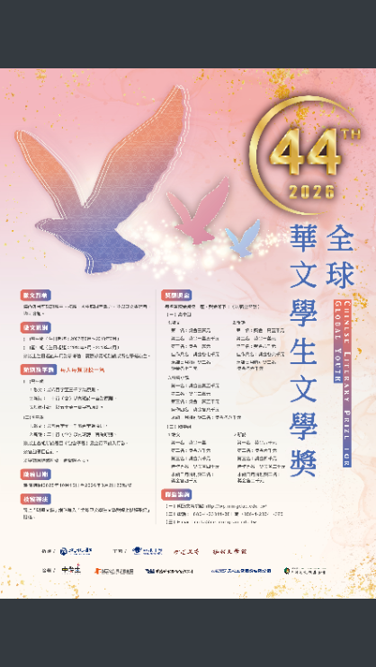臺中市私立明道高級中學舉辦「第44屆全球華文學生文學獎」競賽,敬邀貴校學生踴躍投稿參與,檢附活動海報,敬請踴躍參與,請查照。
