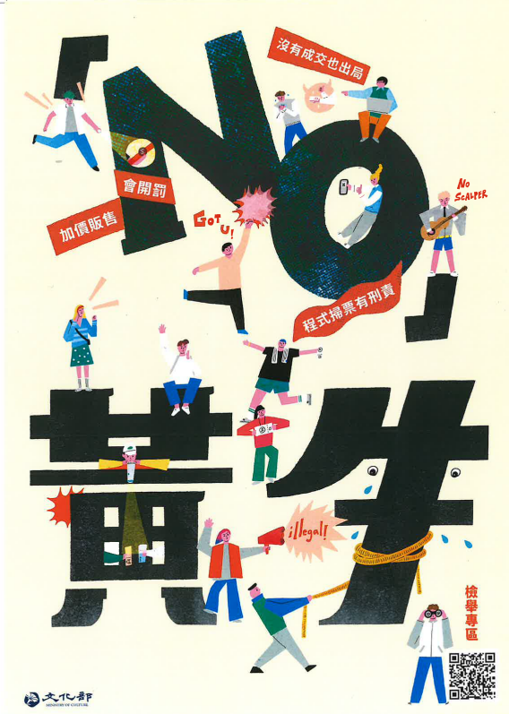 三、為避免學生族群違反規定,請協助宣導,不要購買黃牛票、轉販售票券不得加價、不得以不正方式(例如使用外掛程式)購買藝文表演票券,以免觸法。