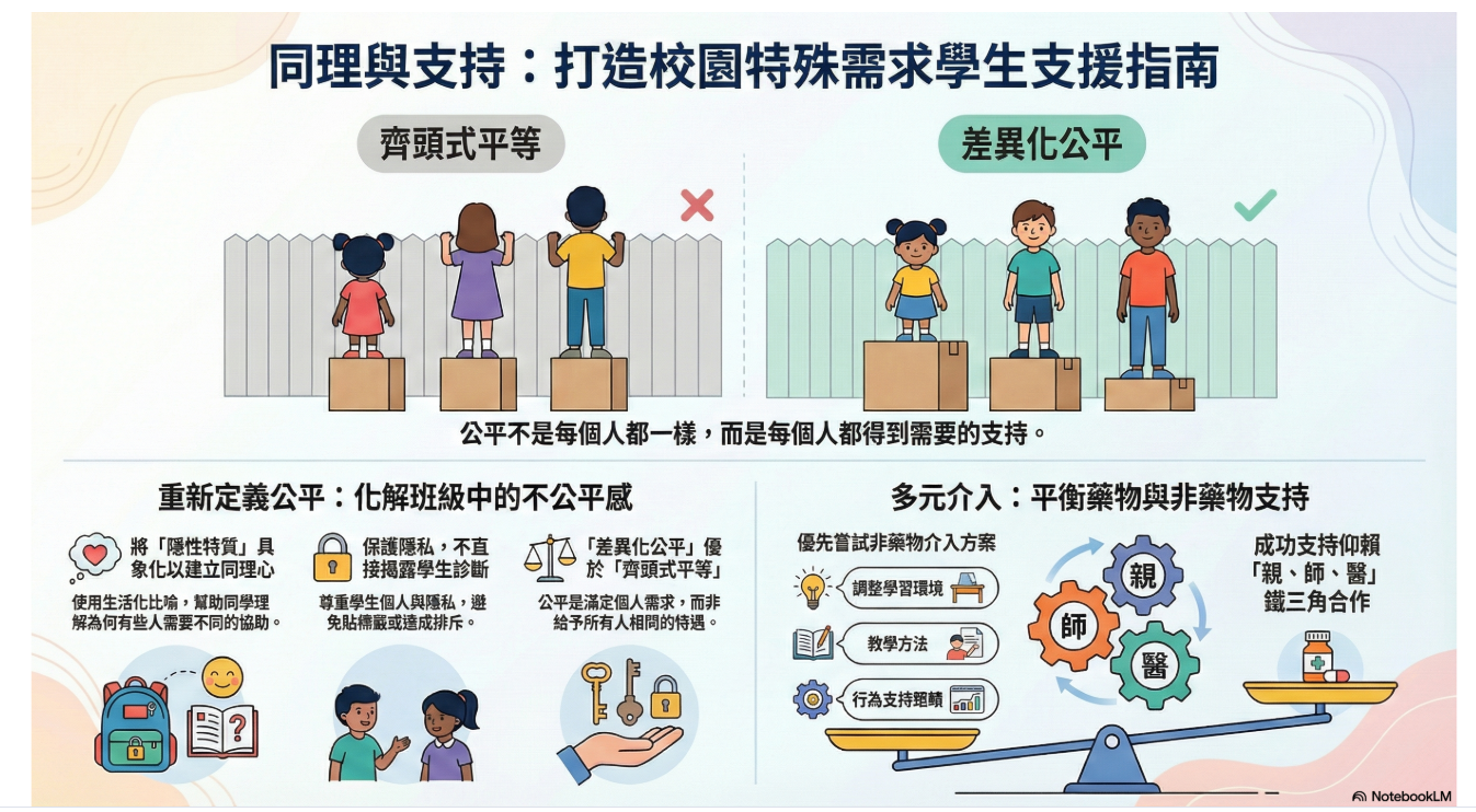 保護隱私,不直接揭露學生診斷,除非學生本人同意,應以尊重與保密為原則。