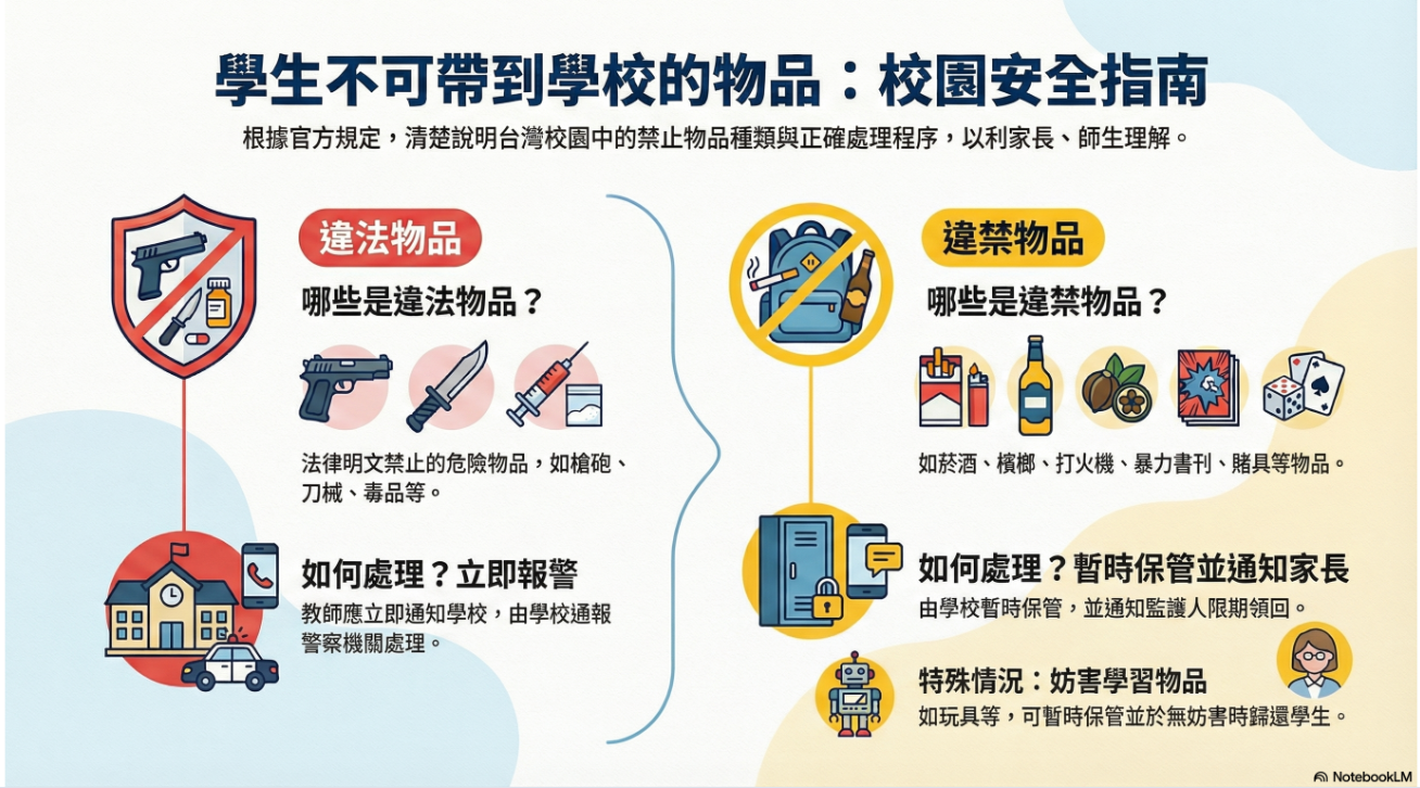 教師或學校發現學生攜帶前二項各款以外之物品,有妨害學習、教學或校園安全之虞者,得予暫時保管,於無妨害學習、教學或校園安全之虞時,返還學生或通知法定代理人或實際照顧者領回。